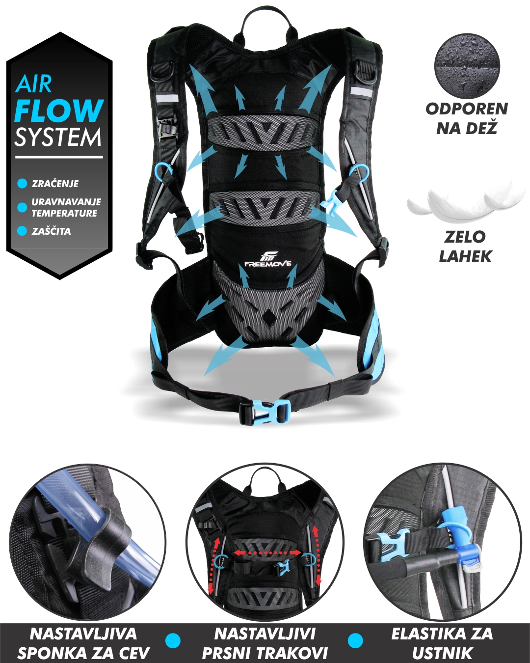 Vsestranski športni nahrbtnik FM-4000 je posebej zasnovan za dnevne izlete, kolesarjenje, tek, smučanje ali deskanje na snegu ter ostale športne dejavnosti na prostem. Nahrbtnik je popolnoma opremljen za prenašanje meha za vodo s prostornino 2L ali 3L ter drugih nujnih stvari med vašimi dnevnimi aktivnostmi.